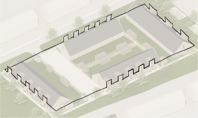 De woningen zullen zo worden opgezet dat ze een goede inpassing hebben in de bestaande wijk. Hierbij wordt gekeken naar vier bouwblokken welke logisch passen in het stedelijk weefsel van de wijk. Het is daarbij van belang dat de woningen een soort eiland vormen in het bestaande groen. Door te spelen met goothoogten en het toepassen van meerdere metselvormen wordt gezocht naar ritme en tegelijkertijd speelsheid.
